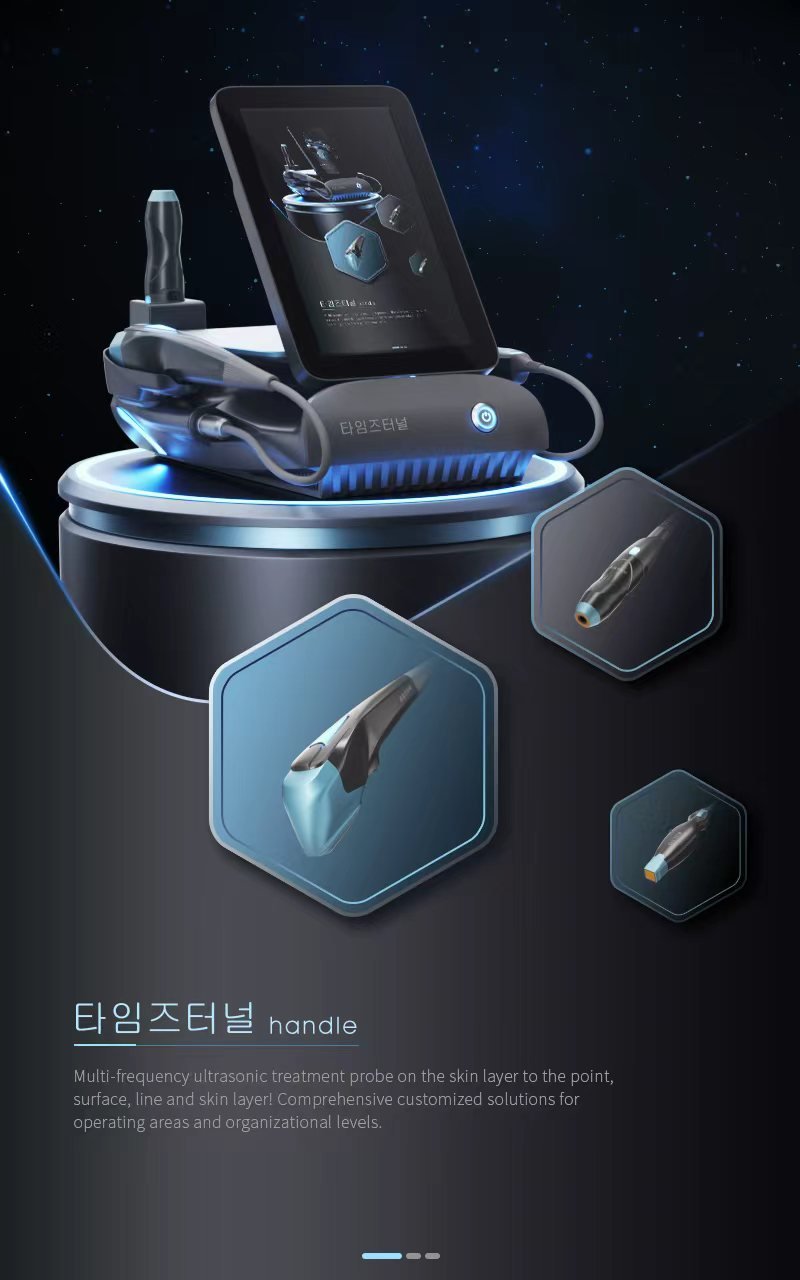 The Titanium Ultrasonic Treatment integrates three cutting-edge anti-aging technologies: High-Intensity Focused Ultrasound (HIFU), V-Max, and Thermage. These three advanced anti-aging probes are specially designed and developed to achieve multi-faceted treatments for the face and body. They can rapidly generate high-energy focused ultrasound waves that penetrate the epidermis and fat layer, stimulating cell membrane contraction and focusing energy on the SMAS fascia layer at 40-65°C. This produces a thermal effect on different areas of the deep and superficial skin, achieving a tightening and lifting effect that is non-invasive, painless, and requires no recovery period.